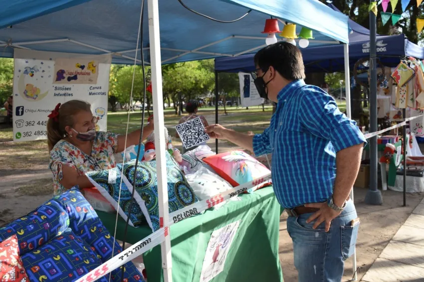 "Es un trabajo muy cuidado, estamos apoyando a nuestros emprendedores, producen lo que venden y están registrados en el Municipio, contando con el código QR y con el monotributo social", explicó el Jefe comunal que recorrió el sector junto al subsecretario de Desarrollo Local y Economía Social, Diego Ríos y Lorena Escobar, de la asociación "Artesanías Unidas".