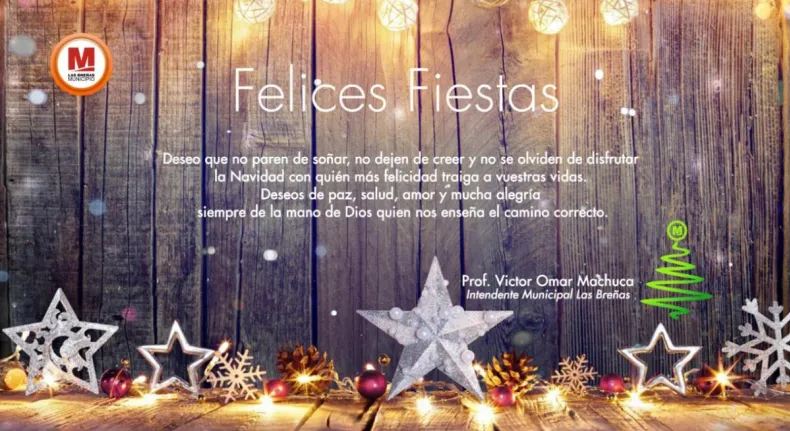 "¡Felices fiestas comunidad de Las Breñas! Son los deseos del Intendente, Víctor Omar Machuca", concluye el comunicado.