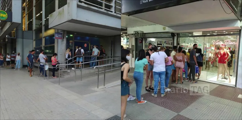 Largas filas podían verse en los locales de indumentaria y calzado, como así también en los cajeros de la ciudad.