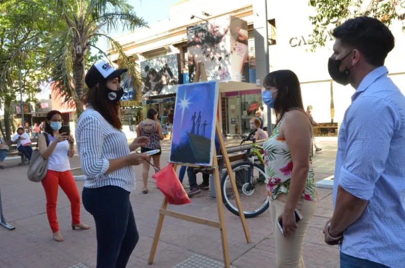 Los vecinos de Resistencia pudieron ser testigos de una muestra de cuadros artísticos en la peatonal, gracias a la iniciativa "Arte en Navidad", impulsada por el Club de la Pintura, con apoyo del Municipio de Resistencia.
