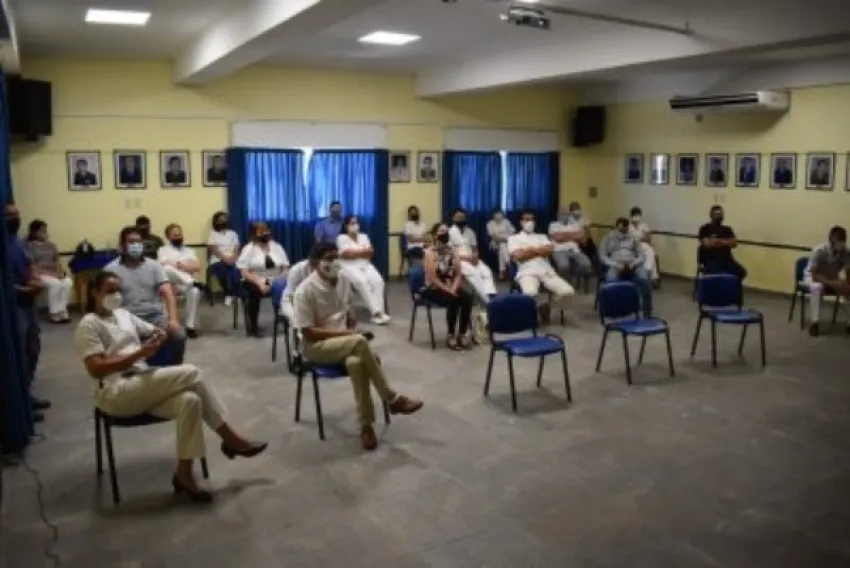 Esta mañana, alrededor de las 9 en el Salón Azul perteneciente a la Escuela de Policías, ubicado en avenida Coronel Falcón al 350, el personal del Ministerio de Salud capacitó a los empleados policiales en las acciones para la vacunación contra el coronavirus.