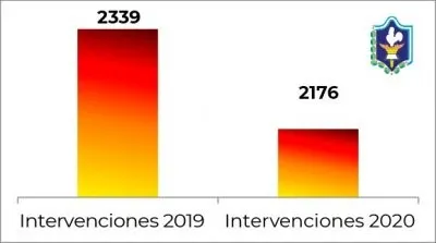 En tanto, en 60 incidentes de tránsito no se lamentaron lesionados contra 78 del año 2019.