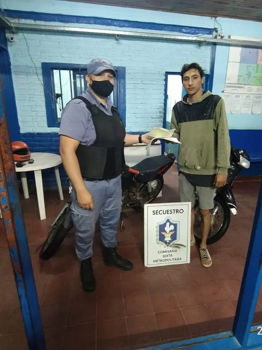 Al ver a la policía los delincuentes se dieron a la fuga, abandonando la moto robada y tras un seguimiento, lograron demorar a uno de los jóvenes identificado como A.A. de 17 años.