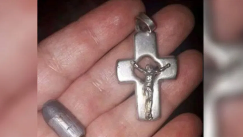 Un crucifijo le salvó la vida de una bala perdida
