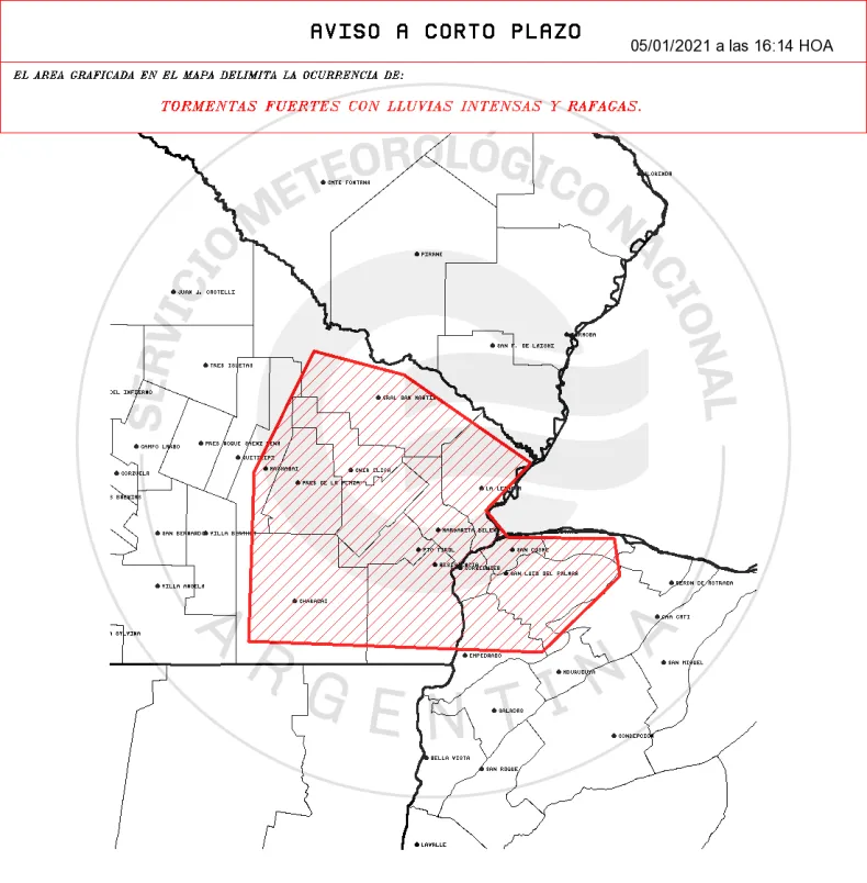 El aviso a corto plazo rige para los departamentos Donovan - 1 de Mayo - 25 de Mayo - Bermejo - Ldor Gral S. Martin - Libertad - Pres de la Plaza - San Fernando - Sargento Cabral - Tapenaga.