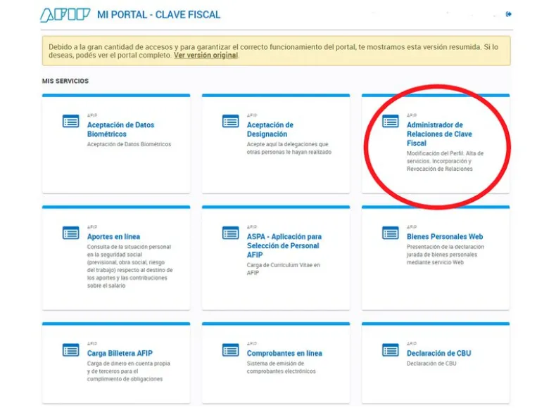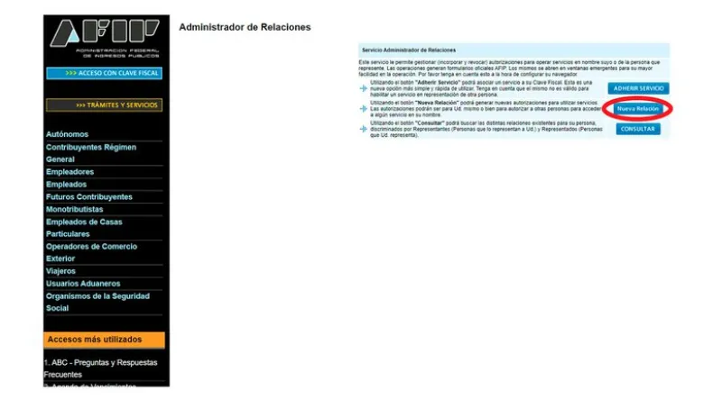 Los contribuyentes que tengan ese nivel de clave, deberán ingresar a su cuenta –se requiere número de CUIL y clave fiscal- y seleccionar la alternativa "Administrador de relaciones de clave fiscal".