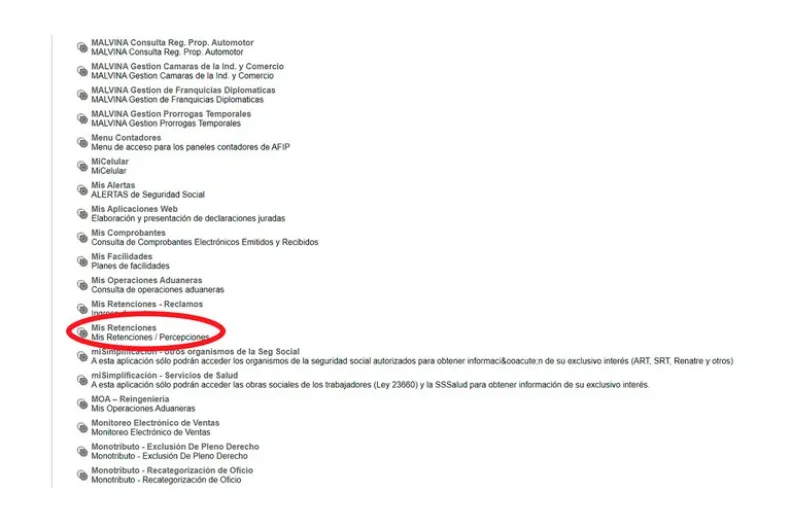 Acto seguido, el contribuyente se encontrará con un listado con el logo de AFIP y la alternativa "Servicios administrativos". De allí surgirá una lista con los servicios que el ente recaudador ofrece y se deberá optar por la opción "Mis retenciones" dentro de la cual se debe confirmar que adhiere a la relación.