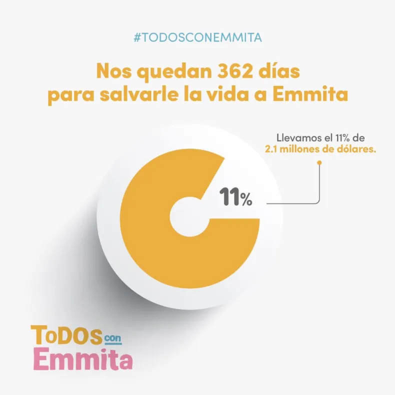 Todos con Emmita: la campaña alcanzó un 11% del presupuesto necesario para adquirir el medicamento