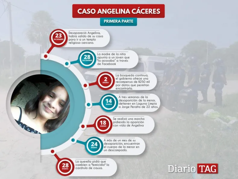 El 18 de noviembre del 2018 a las 13.40 aproximadamente, en el domicilio Manzana 4 parcela 9 del barrio Juan Bautista Alberdi de Resistencia, Jorge Ramón Peralta -previo a mantener contacto personal y mediante Facebook con Angelina de 13 años- la abusó sexualmente con acceso carnal.