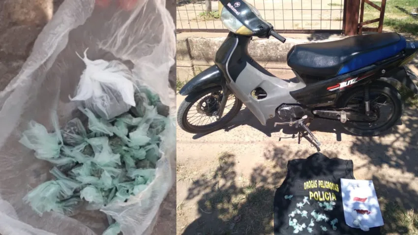 Tenía más de 45 gramos de marihuana fraccionada en "bochitas". Además, no tenía los papeles de la moto que conducía.
