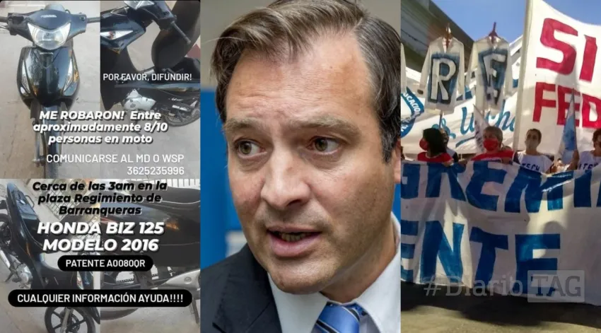 El sábado 13, a diez días de otro robo "piraña" en el barrio Tiro Federal , dos jóvenes que circulaban en moto por avenida 9 de Julio en Barranqueras, fueron sorprendidos por un grupo de entre 8 y 10 hombres también en moto. "Uno se me acerca y me dice: yo tengo que hablar con vos. Cuando intento acelerar para escapar, me chocan y me apuntan con un arma", contó la víctima a Diario TAG .
