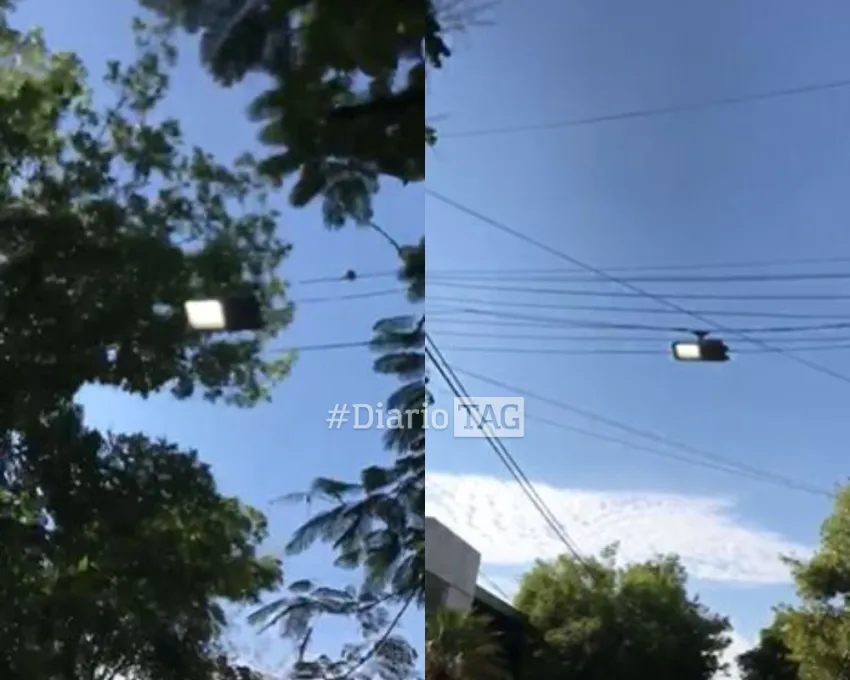 Junto con su reclamo, el vecino envió un video en el que se puede ver el alumbrado público que cuelga sobre la calle prendido a plena luz del día.