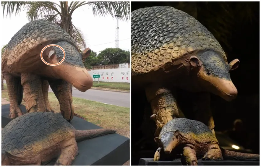 Se trata de un tatú carreta del escultor Rubén Darío Marcoff que realizó una serie de animales autóctonos que se encuentran distribuidos por la zona y la obra en cuestión había sido colocada el viernes 12 de marzo.