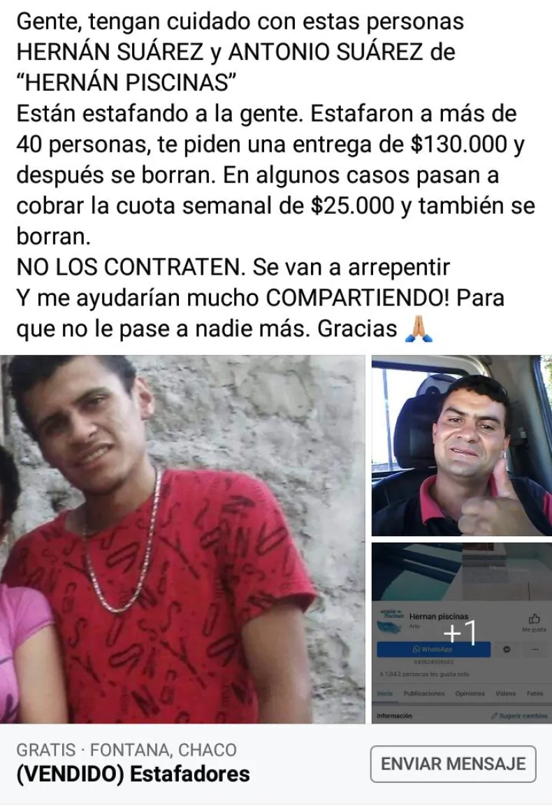 Las investigaciones del caso iniciaron en el mes de diciembre de 2020, cuando un grupo de alrededor de 25 personas, denunciaron haber sido estafados por un joven de 19 años quien ofreció servicios de construcción de piletas, les cobraba por adelantado y luego desaparecía.