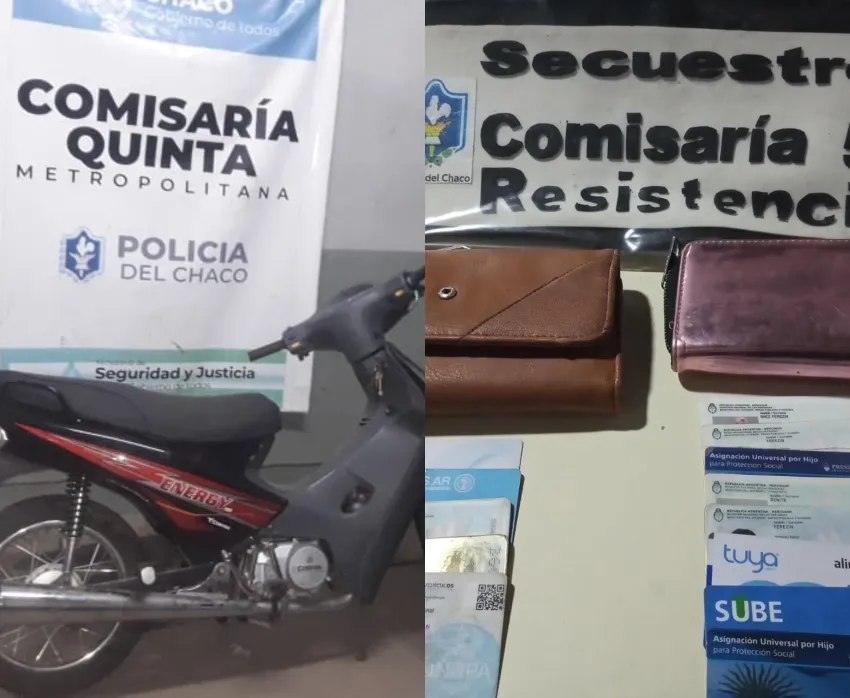 Fue trasladado a la unidad y al ingresar al detenido se encontró con una mujer quien señalo que el junto a otro individuo sustrajeron la moto en la que circulaba y que debajo del baúl tenía dos carteras de mano, con dinero y documentaciones. Controlaron el interior de habitáculo y hallaron ambas billeteras.