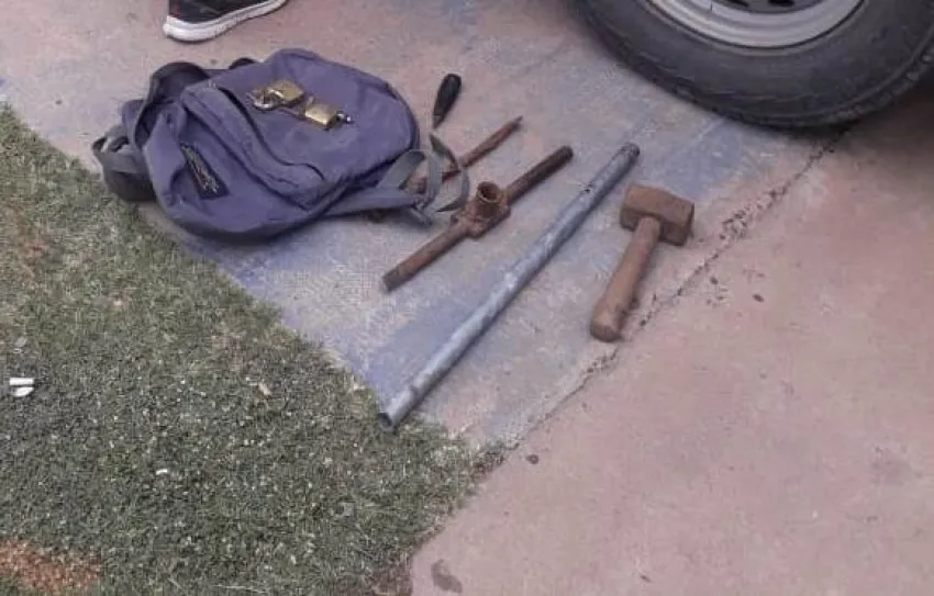 Se trata de dos jóvenes de 16 y 18 años, quienes tenían en su poder una mochila, con un martillo, una barreta de hierro, y un corta hierro.