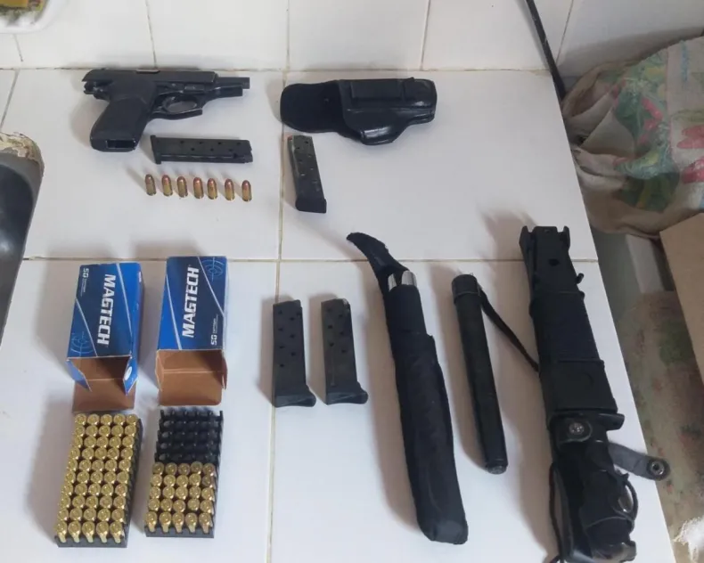 Tras un allanamiento realizado en las últimas horas en el que buscaban el arma de un penitenciario, un hombre de 45 años fue detenido y tres armas, un aire comprimido, varios cartuchos, pesos, dólares, guaraníes y otros elementos fueron secuestrados.