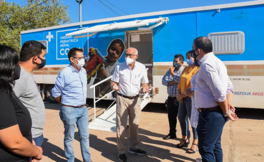 El intendente Gustavo Martínez visitó, en el playón del Domo del Centenario, la Unidad Pediátrica Móvil que la Fundación Conin utilizará para realizar -de manera conjunta con la Ciudad de Resistencia- un relevamiento socionutricional para detectar patologías nutricionales en niños y niñas de 0 a 4 años y mujeres embarazadas.