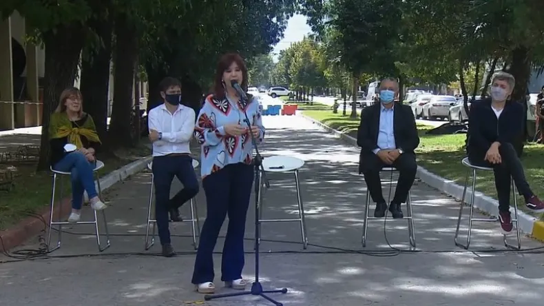 "Si desde los partidos políticos no somos capaces de articular un acuerdo mínimo frente a cuestiones estructurales como es el endeudamiento externo y la economía bimonetaria, va a ser muy difícil gobernar la Argentina, sino imposible tal vez", afirmó la vicepresidenta, que tuvo a su lado al gobernador Axel Kicillof, al diputado Máximo Kirchner, al intendente de Las Flores, Alberto Gelené, y a Gladys D’Alessandro, referente de la Comisión de Familiares y Amigos de los Desaparecidos y Víctimas del Terrorismo de Estado de la ciudad bonaerense.