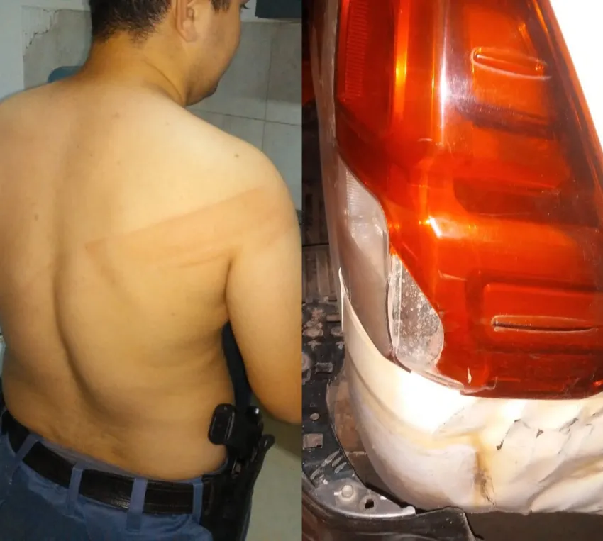 En ese momento, se apersonaron varios sujetos a fin de evitar el procedimiento, quienes lesionaron en la espalda con un palo a uno de los efectivos, asimismo arrojaron elementos contundentes dañando el móvil policial.