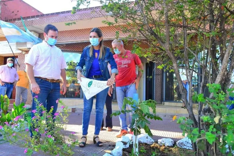 De esta manera la presidente del Concejo Deliberante Soledad Rach, acompañada por el Secretario de Gobierno Ismael, la jueza de Faltas Marcia Domínguez, la concejal Belén Cejas, el secretario de Ambiente Enzo Ferrari y personal del área, encabezaron la plantación de 2 dos árboles en la acera del Concejo deliberante.