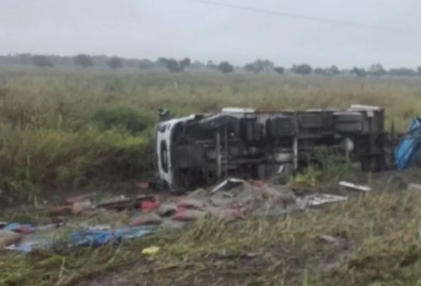 De acuerdo con el parte policial, el camión Ford tenía un acoplado en el que trasladaba bolsas de cemento y terminó volcado sobre la banquina por razones que se tratan de establecer.