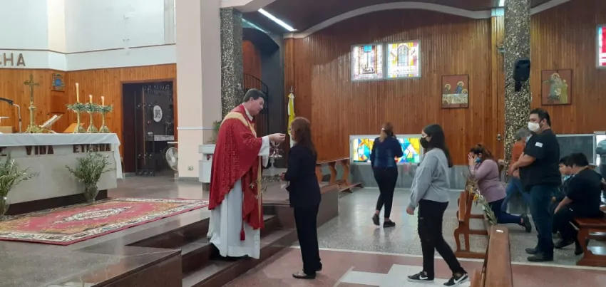 El padre Sergio Nosa se refirió al Domingo de Ramos señalando que "el olivo que bendecimos representa que nosotros seguimos a Cristo y que nuestra vida tiene que llevar ese estilo que Jesús nos marcó en el Evangelio. Y como estamos en un contexto especial donde hay mucha angustia, a veces desesperación, muchas necesidades que tenemos humanamente, se invita a los fieles a que ese ramo bendecido lo coloquen en un lugar visible de sus hogares para que cada vez que llegan cansados, angustiados, desanimados, con alguna enfermedad o con algún dolor, que puedan levantar su mirada hacia ese ramo bendecido y descubrir que tienen a Cristo que es su fortaleza, al Él seguimos y ese es el estilo de vida que debemos llevar".