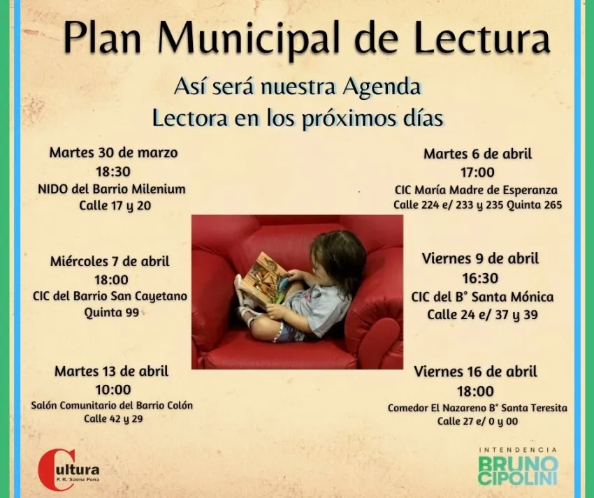 Este martes 30 el Plan Municipal de Lectura se pone en marcha en Sáenz Peña