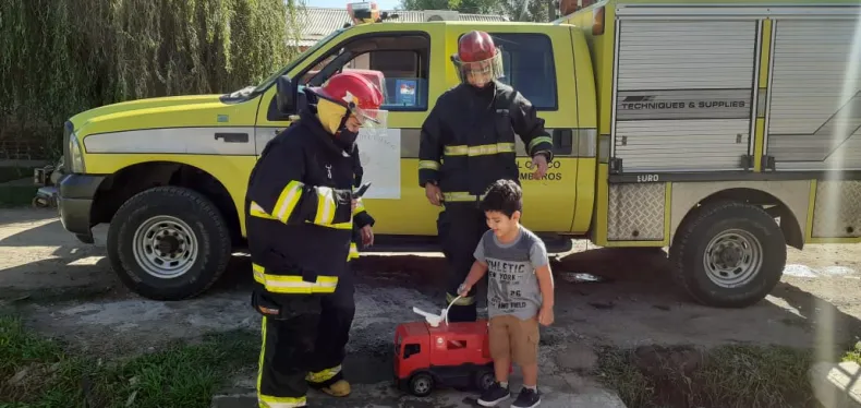 En la oportunidad, los efectivos concurrieron con una autobomba liviana, hicieron entrega de unos presentes y le mostraron elementos de trabajo al niño.