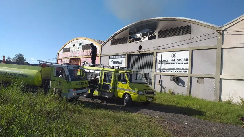 Pasadas las 9 de este miércoles 31 de marzo, la División Bomberos se encuentran interviniendo en un incendio en un galpón ubicado sobre la Ruta Nacional 16, a unos 300 metros de la rotonda de acceso norte a Resistencia.