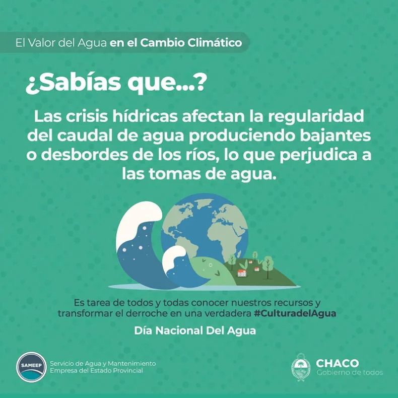 La provincia no es ajena al contexto de cambio climático que sufre el planeta con la sequía y bajante de los ríos, que se sigue transitando en 2021. Por ello insta a reflexionar acerca de la influencia que ejercen las personas en el ambiente y cómo pueden colaborar para paliar esta crisis hídrica a través de la correcta utilización de los servicios.