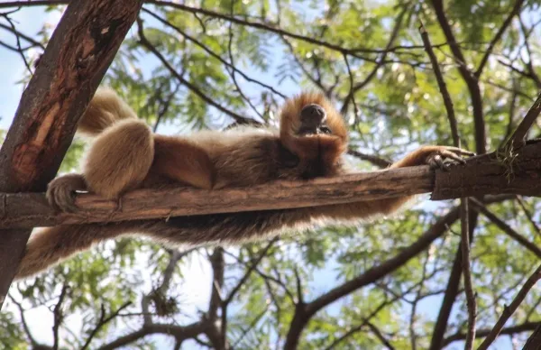 Simona, la mona que se pasea por los árboles de nuestra Plaza 25 de Mayo