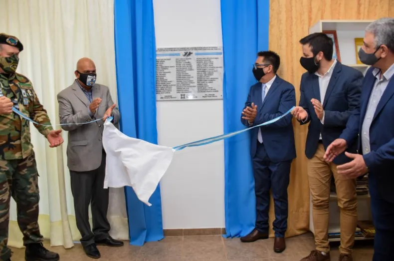 El acto se llevó a cabo en la sede del Centro de Ex Soldados Combatientes de Malvinas, ubicada en Dónovan 750, en donde se firmó un convenio de cooperación mutua; y se descubrió una placa inaugural del mástil, ubicado al frente a la sede, en donde se depositó una ofrenda floral homenajeando a los héroes caídos y sobrevivientes. Además, se inauguró allí una biblioteca que tendrá material exclusivo sobre la guerra.