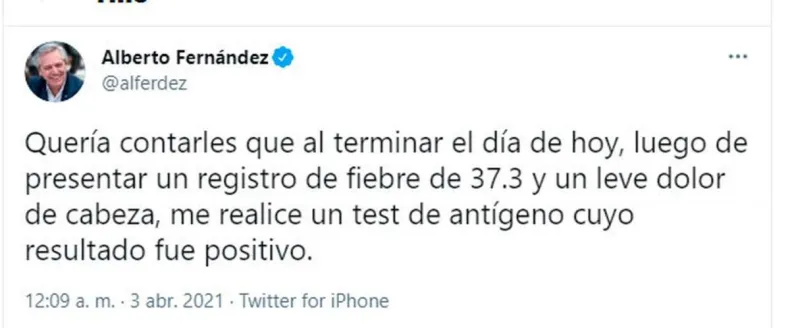 Alberto Fernández había recibido la primera dosis de la vacuna Sputnik V el 21 de enero y la segunda se la aplicó en la Quinta de Olivos semanas después. No obstante, desde la Casa Rosada señalaron que la inmunización no representa una garantía absoluta de no contraer la enfermedad.