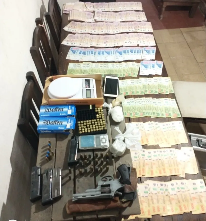 En el primer inmueble se encontraba un ciudadano de 48 años y secuestraron dos balanzas de precisión, 92 cartuchos de distintos calibres, una desmalezadora Sthil, un compresor, $213.600 en efectivo, una Honda Biz 125 con el motor adulterado, una soldadora, un parlante, un grupo electrógeno, un arma de fuego calibre 32, cuatro cargadores de 9 milímetros, 63 gramos de cocaína y 59 gramos de marihuana.