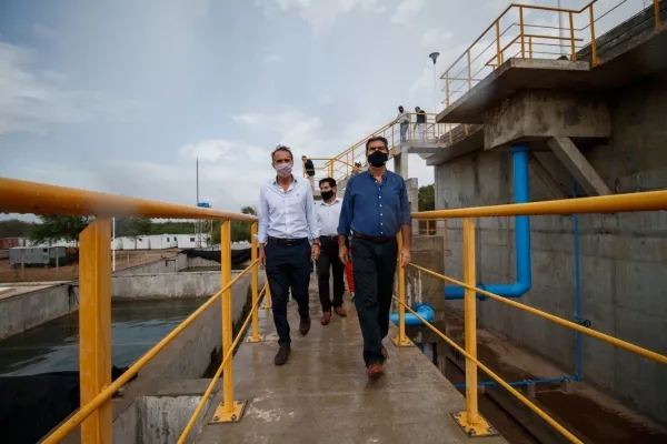 El gobernador Jorge Capitanich y el ministro de Obras Públicas de la Nación, Gabriel Katopodis, supervisaron este martes obras de alto impacto para el saneamiento urbano y la provisión de agua potable, que se ejecutan en la provincia con el acompañamiento de del Gobierno nacional: la reactivación de la planta de tratamiento de líquidos cloacales del Área Metropolitana de Resistencia y el segundo tramo del acueducto de El Impenetrable que va desde Misión Nueva Pompeya a Fuerte Esperanza.