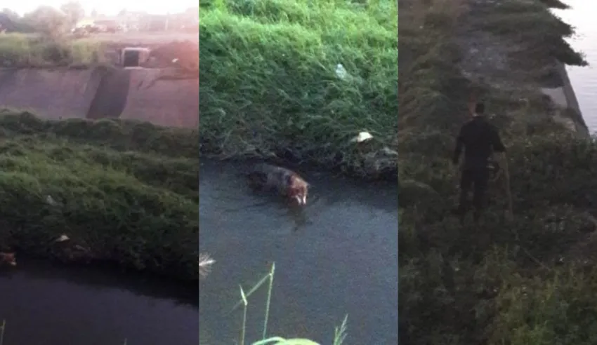Rescataron a un perro que cayó al canal de Av. Soberanía y ya tiene nueva familia