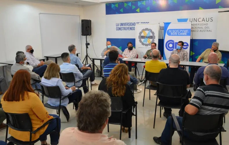 Con una amplia participación de dirigentes de toda la provincia, la Federación Económica del Chaco mantuvo este miércoles una reunión con los ministros de Planificación, Economía e Infraestructura, Santiago Pérez Pons; y el de Producción, Empleo e Industria, Sebastián Lifton, en la sede de la Universidad Nacional del Chaco Austral (UNCAus), de Sáenz Peña.