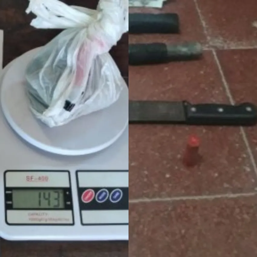 Como resultado se procedió al secuestro de 144 gramos de marihuana, un machete, cartuchos de escopeta calibre 16 y un arma de fabricación casera "tumbera".