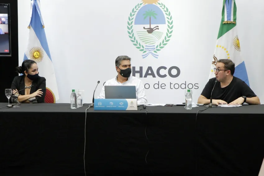 El gobernador Jorge Capitanich junto al ministro de Planificación, Economía e Infraestructura, Santiago Pérez Pons y la secretaria General de Gobierno Noelia Canteros, encabezaron un nuevo encuentro del Consejo de Transformación Digital.