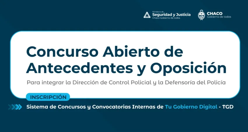 El Ministerio de Seguridad y Justicia recuerda que hasta este jueves podrán inscribirse profesionales idóneos interesados en formar parte de la Dirección de Control Policial y la Defensoría del Policía. Estas áreas del Estado son figuras impulsadas por el gobernador Jorge Capitanich en cumplimiento de la Ley Orgánica de la Policía del Chaco (Ley 2011-J).