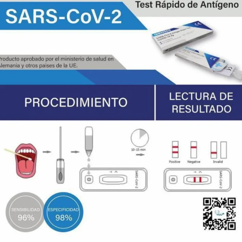 El test chino Immunobio del laboratorio Hangzhou Immuno Biotech CO Ltd es el único autorizado por la Administración Nacional de Medicamentos, Alimentos y Tecnología Médica (Anmat) para la venta en farmacias y de uso profesional exclusivo. ¿Por qué? Porque el mismo producto así lo establece, ya que fue autorizado para ser vendido así. Es un producto de uso profesional exclusivo. Lo que significa que se vende en forma libre en farmacias pero lo debería hacer un médico, enfermero o un bioquímico.
