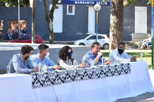 La ministra de Seguridad y Justicia, Gloria Zalazar, participó en la mañana de este miércoles, de la presentación del Consejo de Seguridad Pública de Margarita Belén. El organismo permitirá elaborar políticas de seguridad con mayor participación de la ciudadanía local. Durante el acto, la funcionaria provincial, acompañada de los subsecretarios Juan Basail (Seguridad Vial y Ciudadana) y Gerardo Stancheff (Relaciones Institucionales), entregó al intendente Javier Martínez una impresora para emitir licencias de conducción.