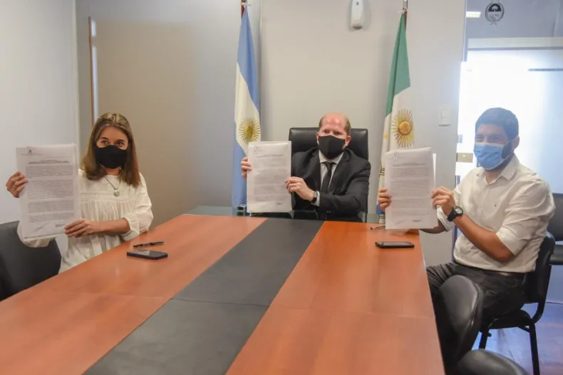 El ministro de Gobierno y Trabajo Juan Manuel Chapo, junto a su par de Desarrollo Social María Pía Chiacchio Cavana y el subsecretario de Economía y Políticas Sociales Diego Luna firmaron un convenio de refacción y mejoramiento de los comedores y merenderos comunitarios que funcionan en los barrios populares.