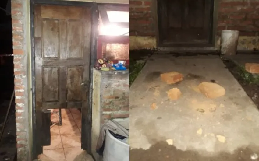 Uno de los ladrillos impactó contra la espalda del joven que junto a quienes estaba ingresó rápidamente a la vivienda. Sin embargo, los agresores no pararon. Siguieron tirando piedras hasta romper la puerta en su parte inferior.