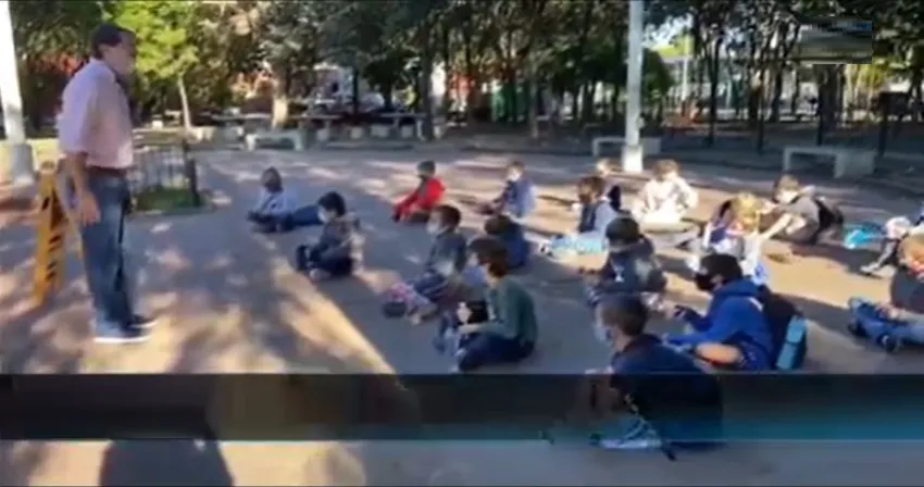El video de un hombre que este lunes dio una clase de matemáticas a nenes de tercer grado en una plaza de Munro se volvió viral. Sentados en el piso, distanciados y con el tapabocas puesto, los alumnos repasaron las tablas con la ayuda de Miguel, papá de un chico del mismo grupo. "Es un día triste, pero estamos contentos del paso que dimos", dijo en diálogo con Telenoche.