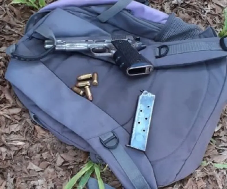 Ante la situación los agentes se cubrieron y luego continuaron con la persecución, mientras el motociclista guardó el arma en una mochila, la arrojó a la calle y huyó.