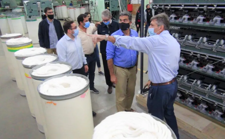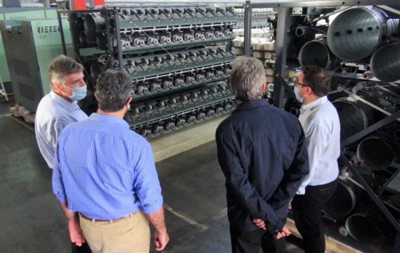 De esta manera, el diputado junto con el primer mandatario provincial, los ministros Sebastián Lifton (Producción, Industria y Empleo) y Santiago Pérez Pons (Planificación y Economía e Infraestructura), y los directivos de la textil, realizaron una recorrida por la planta industrial a fin de verificar el proceso de montaje de la nueva línea de hilados modelo 2021.