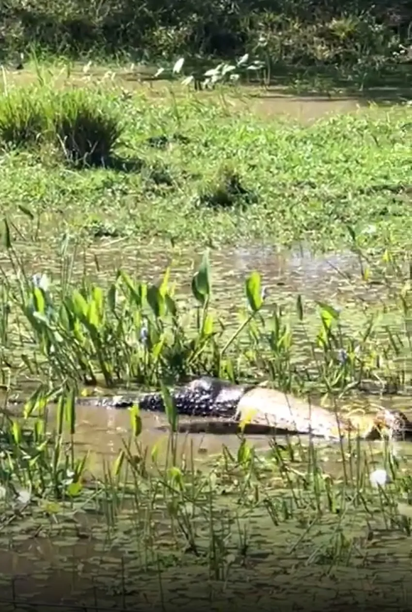 Impactante video del momento en que una boa curiyú intenta ingerir a un yacaré