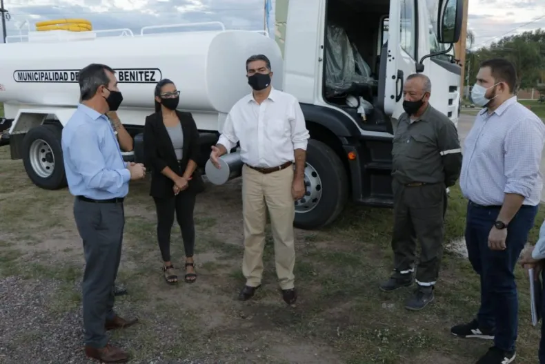 A su turno, el intendente comunal Sergio Phipps agradeció las gestiones del gobierno provincial por el respaldo y acompañamiento para beneficiar y fortalecer el crecimiento de Colonia Benítez. "De esta forma, podemos acceder a un camión tanque 0km para la provisión de agua potable y llegar con este vital elemento a distintos parajes de la localidad. Estamos felices porque este vehículo se viene a sumar a la flota de autos que tenemos en el municipio".